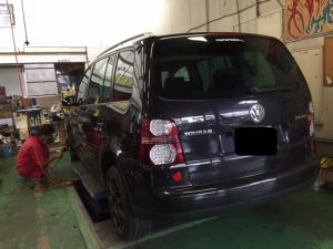 車検点検で入庫頂きましたH様のトゥーランも最終の車高調整もバッチりですよーd(^_^o)