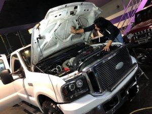 板金工場だけでなく、整備、営業スタッフも総出で作業を進めています!